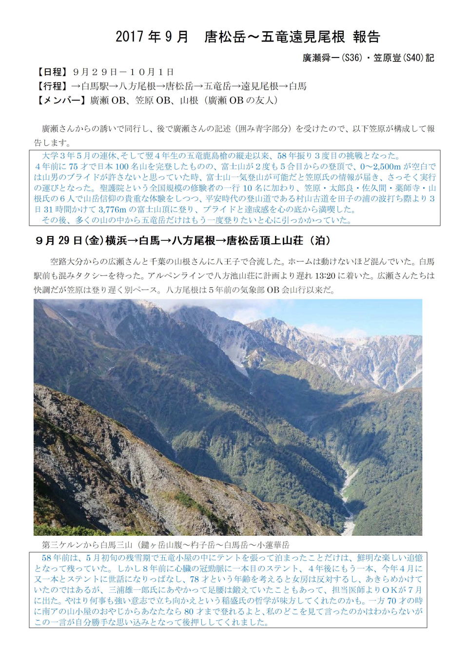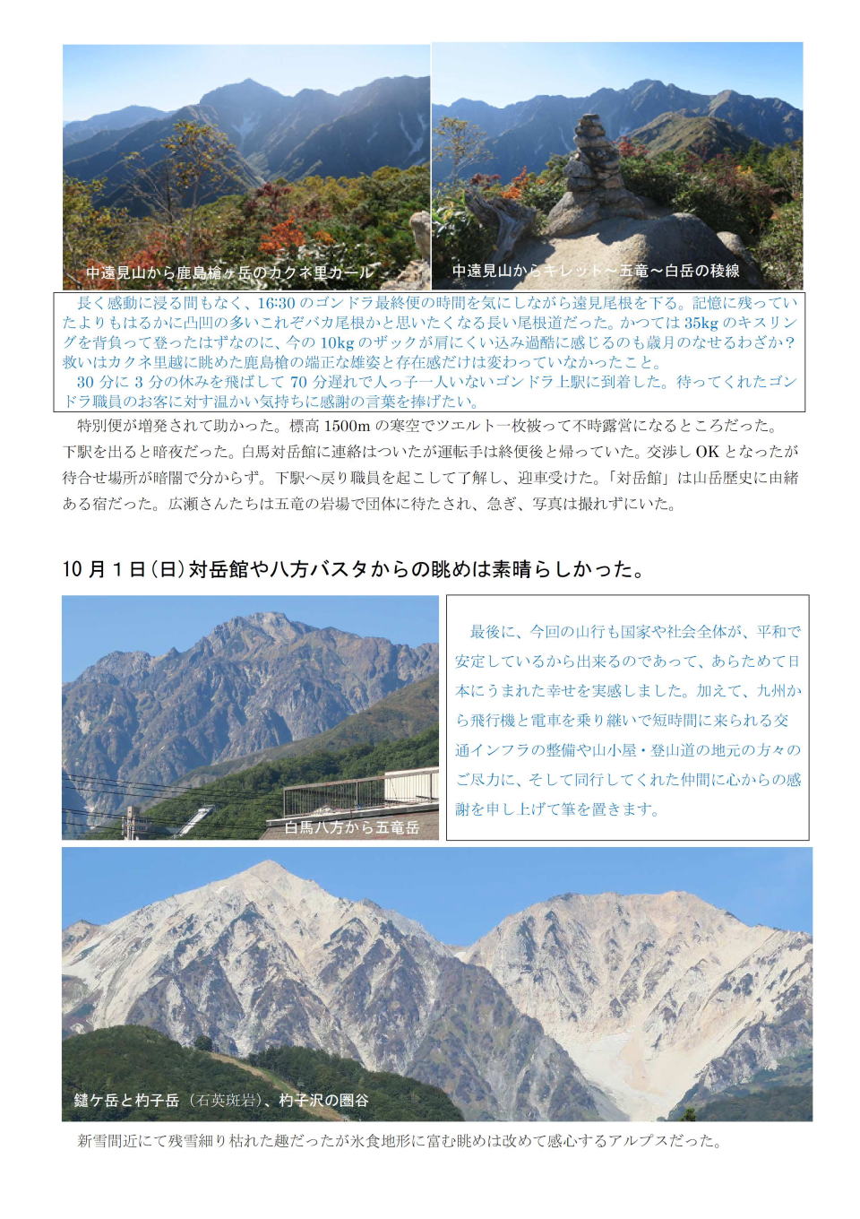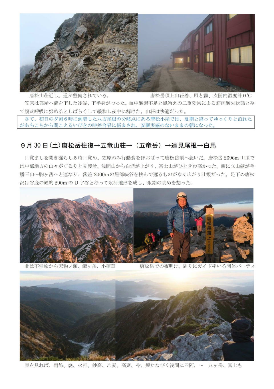 9月29日-10月1日 唐松岳~五竜岳 |
