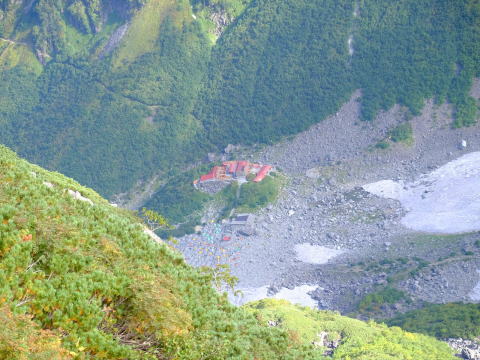 | 北穂山頂からの、滝谷2尾根P2フランケ | 眼下に涸沢ヒュッテ |