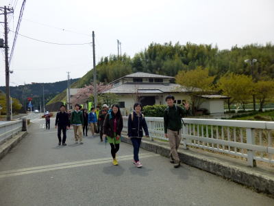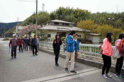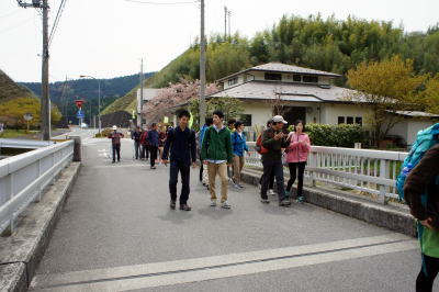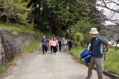 | 交通量も少ないので道路を連れだって歩きます。 | そろそろ新緑の季節になります。 |