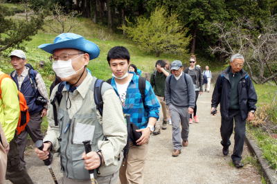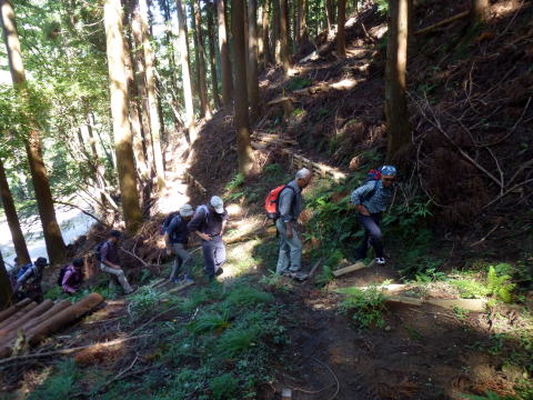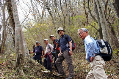 | それでは豊田OBを先頭に登り始めます。 | 清水OBも元気です。 |
