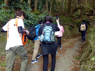 | 少し登ると日向山の登山口に着きました。ここから一気に登るのです。 | ここまでのんびり歩いてきました。 |