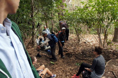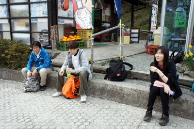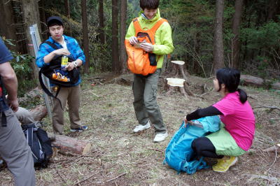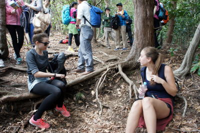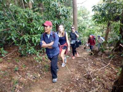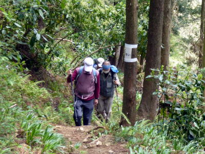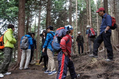 | 行程の半分来たでしょうか?ここで小休止をとります。 | 結構速いペースで来ましたが、登山が初めての人たちが多いのに、よく頑張っています。 |