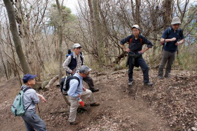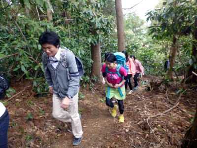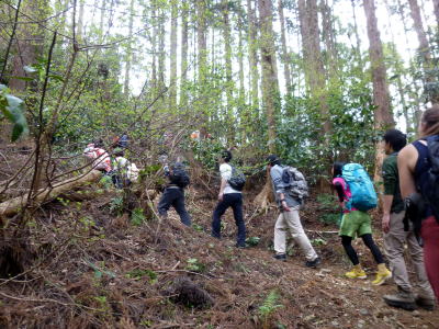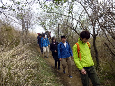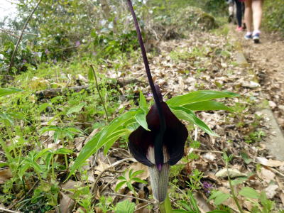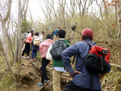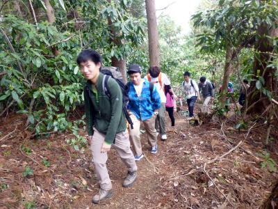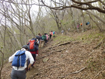 | テンナンショウです。昨年登った高松山と共に矢倉岳は花の多い山で有名です。 | 学生パーティが先行します。 |