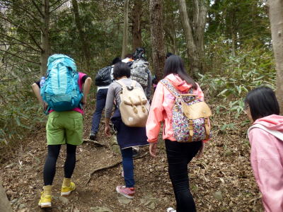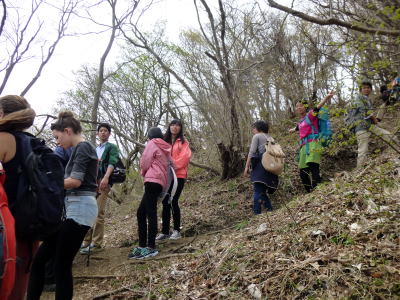 | オーストラリアの留学生です。スポーツはやっていないとのことですが、良く頑張っています。 | ここから学生とOB連は分かれて登ります。 |
