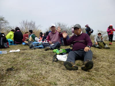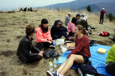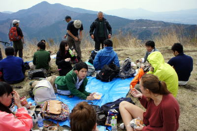 | 昼食も終わりました。 | 明神が岳と金時山をバックにして。 |