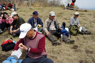 | ピークには他のパーティも結構います。 | お腹が空いたOB連です。 |