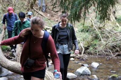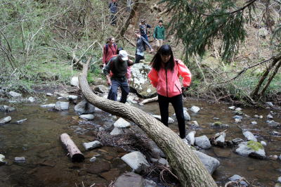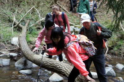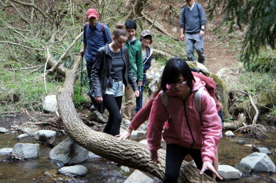 | 倒木が、増水時に渡りやすくしているようです。 | オーストラリアの方たちも、すっかり山を楽しんでいるようです。 |