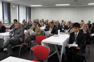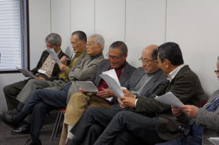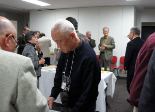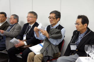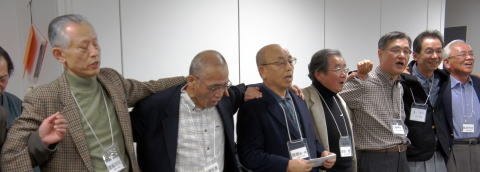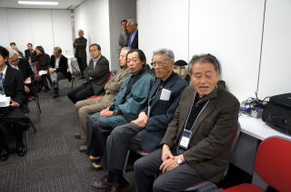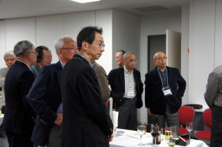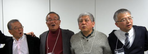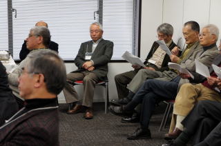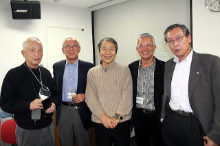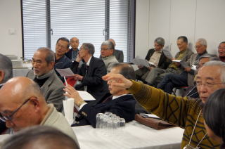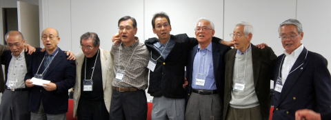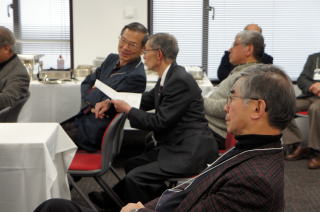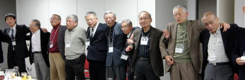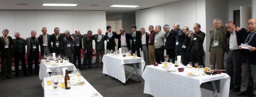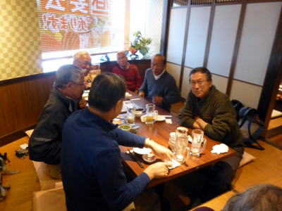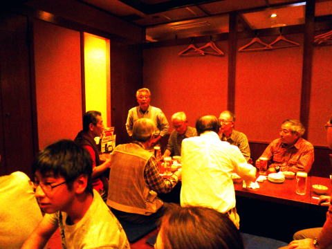 | 加納OBと新川OBです。 | 荒川、高橋、田野辺、斉藤OBです。 | 宮内OBがおられます。ようやく定刻になりました。 |