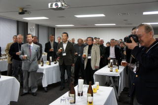 | 滝沢OBによる乾杯の音頭です。 | 乾杯が始まります。 | 小島OBです。 |