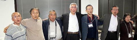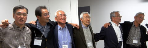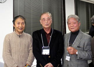 | 東、金子(弘)、恩田気象部OBと松村、白倉、宇野澤38年卒OBの方々。 | 梅崎OBも全く久しぶりに参加されました。 | 滝沢OBと卯月、山本OBです。 |