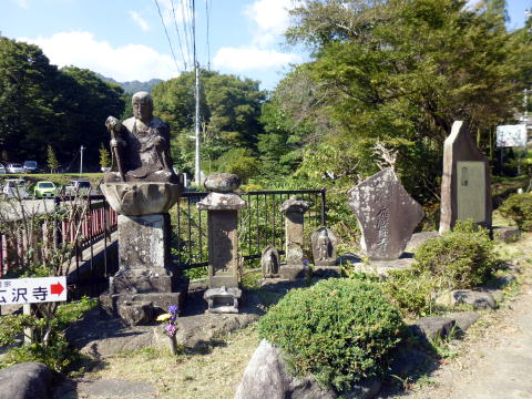 | 下向き地蔵です。 バス停の名の広沢寺(こうたくじ)はここから入ります。 | 道は沢沿いの林の中に入りました。 |