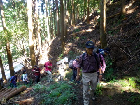 | 登山道は矢倉沢沿いにあります。 | 笠原OBはタフです。呼吸の病気を押して参加しています。 |
